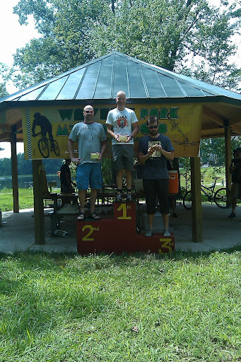 So with two riders in the event and two podium finishes things can only go down hill from there right? Nope. Daddy gets some bragging rights too. The kids race hadn't gone off yet. Naturally Lane's Free Agent Lil' Speedy is was going to roll faster down the hill than and Spiderman bike, so he had the class to wait for his opponents at the bottom of the hill before pulling out the win on the climb. So that makes 3 riders, 3 podium finishes, and a great day in the sun for Goose Creek Racing.